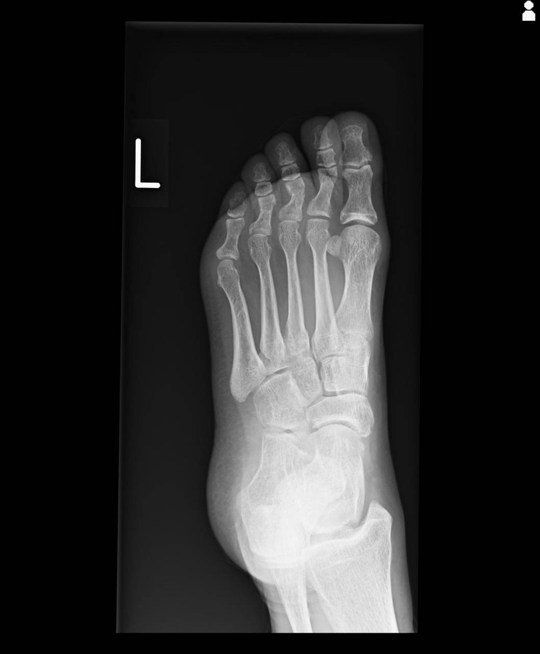 当整骨院が提携している病院にてレントゲン検査を依頼し、撮影した画像を確認すると左第3趾基節骨骨頭骨折が確認できました。