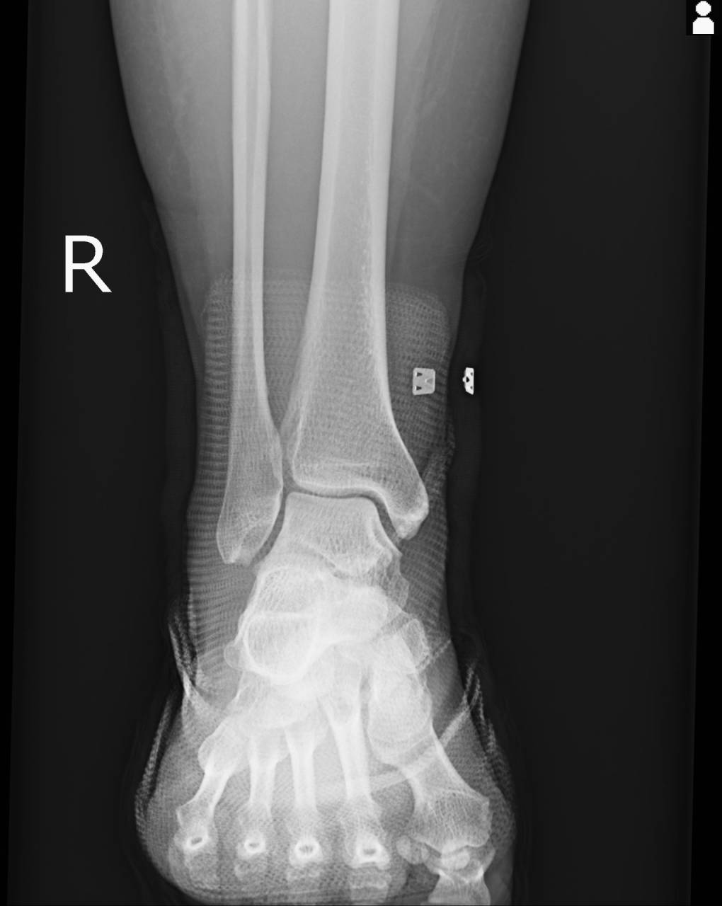 先程触診にて圧痛のあった前距腓靭帯付着部の腓骨部に骨が裂離している画像が出ました。